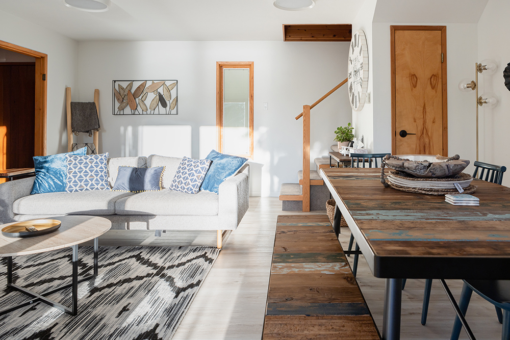 Featuring a modern Scandinavian design, our home is laid out spaciously on three levels for families or friends to spread out, or enjoy cozying up together in the lounging spaces indoors or outdoors. On the main floor, Guests will find a fully-equipped kitchen and a breakfast nook looking out to the Bay; a large open concept space combining the dining and living room, and a large walk-out patio deck with sweeping ocean views; and lastly, a spa-inspired bathroom with an oversized shower. The entire upper floor is an open, luxurious loft with a sleeping area, dedicated workspace, intimate lounging area, and a small outdoor deck for more gorgeous Bay views. Perfectly designed with families in mind, there is a King-sized bed, two (2) Twin-sized beds, and a sofa bed futon-style.